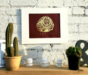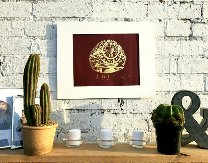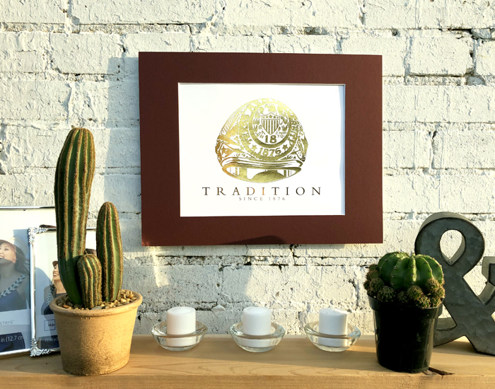 The Texas A&M Class Ring is a symbol of a greater network Aggies have spent countless hours building all across the nation. The ring is an iconic symbol of team unity. It was paramount this print was designed in a style as timeless as the Aggie Network. As a symbol of school legacy, this design was originally hand drawn in the style of traditional photo realism. Once the drawing was complete, the lines were then refined digitally until the final image had a clean and professional appearance to emulate the quality of candidate the ring was intended to represent. For the finally, gold foil printing was chosen to provide the piece with a sharp and classy finish.