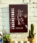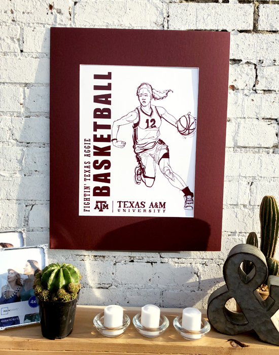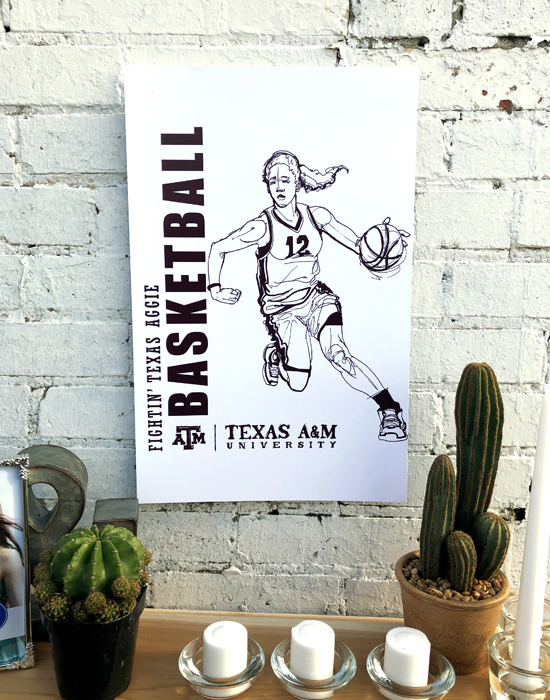 Athletics is the celebration of the movement of people. The featured drawing is one of several finely inked collectables in a series of the 18 varsity sports at Texas A&M and the celebration of their unique individual movements. The style stems from the art of 'classic figure drawing' and 'continuous contour'. Using a cocktail of good ol' fightin' Texas Aggie Team Spirit and an elegant use of negative spacing and portraiture, the result was intended to be truly impressionable.