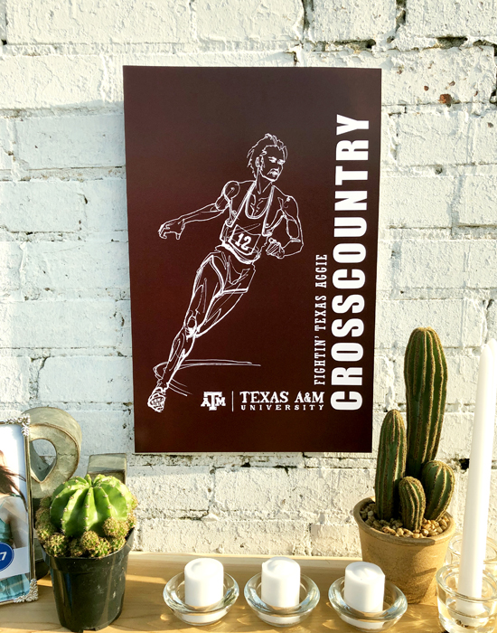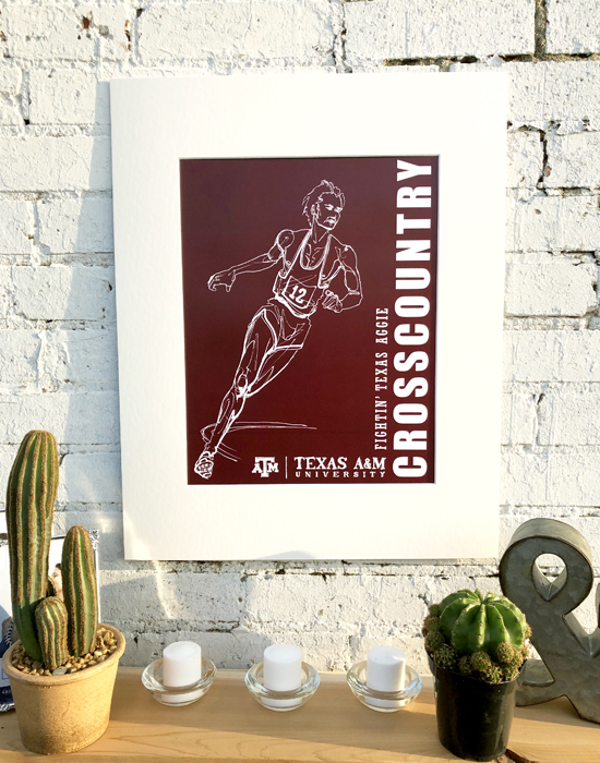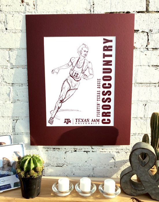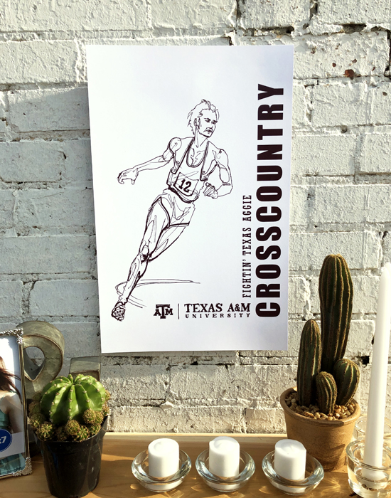 Athletics is the celebration of the movement of people. The featured drawing is one of several finely inked collectables in a series of the 18 varsity sports at Texas A&M and the celebration of their unique individual movements. The style stems from the art of 'classic figure drawing' and 'continuous contour'. Using a cocktail of good ol' fightin' Texas Aggie Team Spirit and an elegant use of negative spacing and portraiture, the result was intended to be truly impressionable.