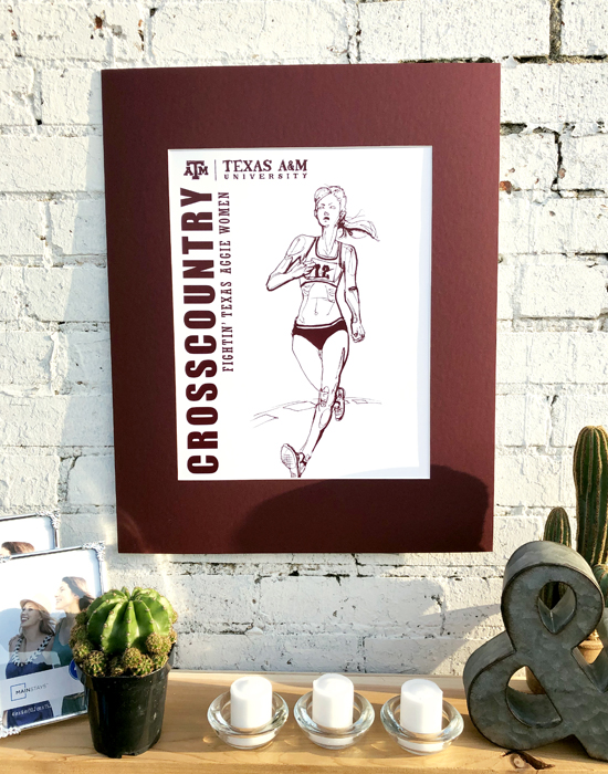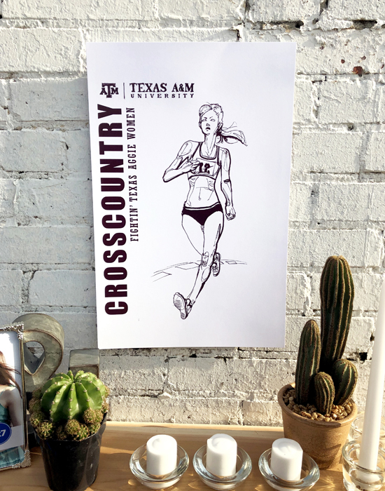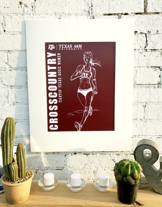 Athletics is the celebration of the movement of people. The featured drawing is one of several finely inked collectables in a series of the 18 varsity sports at Texas A&M and the celebration of their unique individual movements. The style stems from the art of 'classic figure drawing' and 'continuous contour'. Using a cocktail of good ol' fightin' Texas Aggie Team Spirit and an elegant use of negative spacing and portraiture, the result was intended to be truly impressionable.