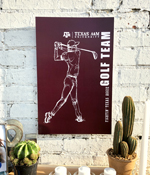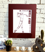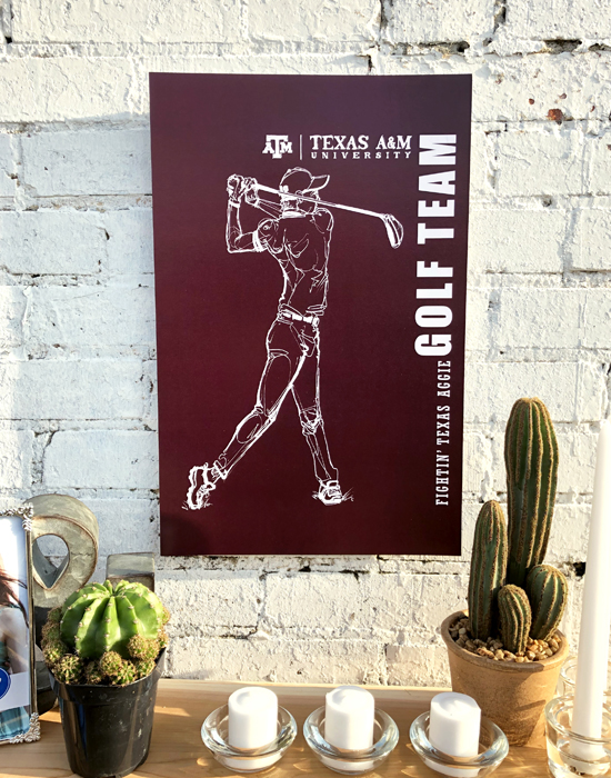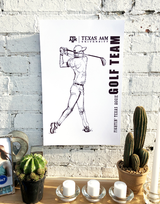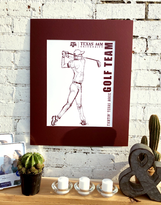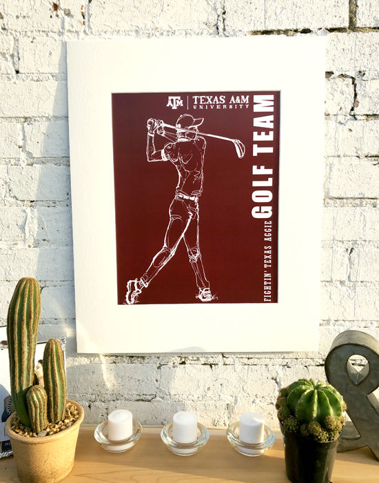 Athletics is the celebration of the movement of people. The featured drawing is one of several finely inked collectables in a series of the 18 varsity sports at Texas A&M and the celebration of their unique individual movements. The style stems from the art of 'classic figure drawing' and 'continuous contour'. Using a cocktail of good ol' fightin' Texas Aggie Team Spirit and an elegant use of negative spacing and portraiture, the result was intended to be truly impressionable.