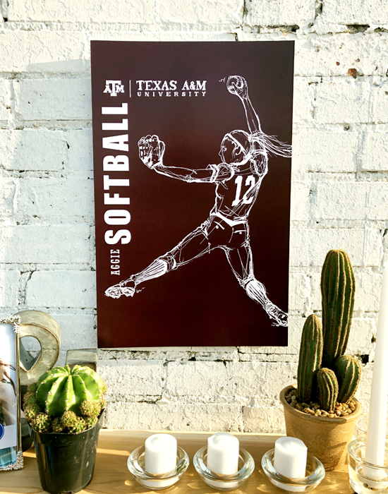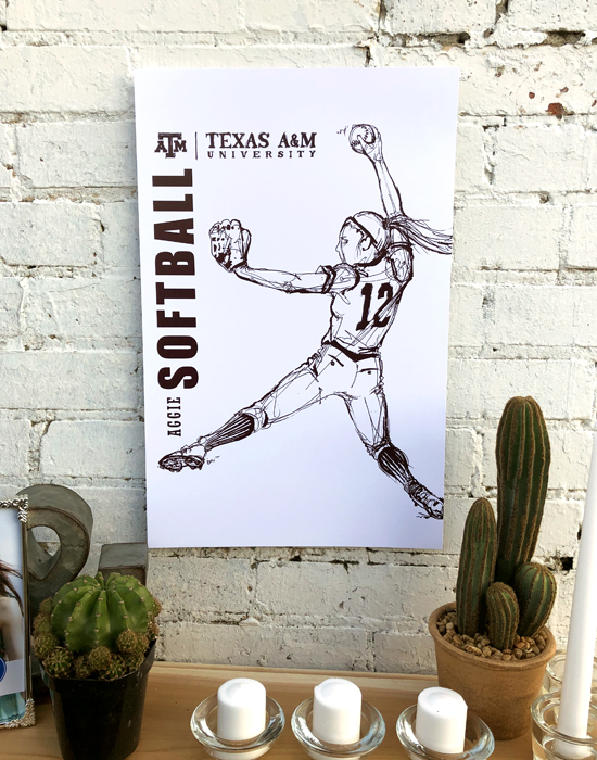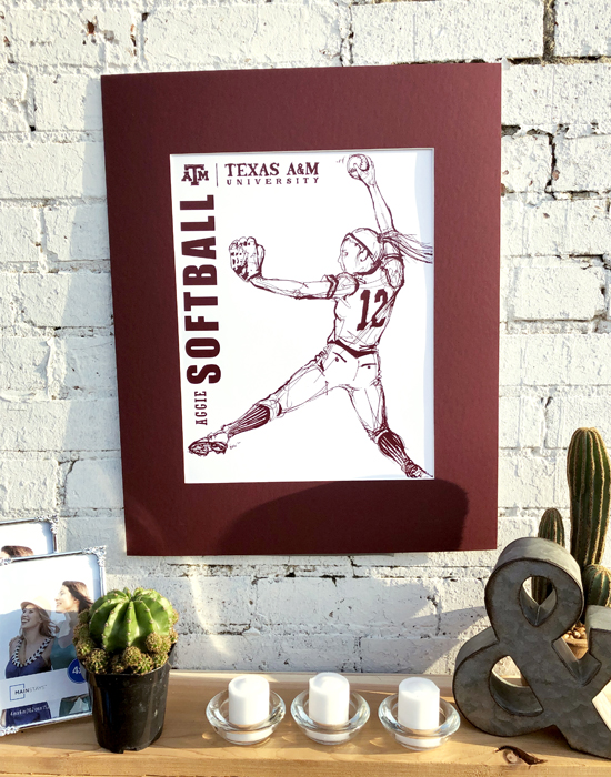 Athletics is the celebration of the movement of people. The featured drawing is one of several finely inked collectables in a series of the 18 varsity sports at Texas A&M and the celebration of their unique individual movements. The style stems from the art of 'classic figure drawing' and 'continuous contour'. Using a cocktail of good ol' fightin' Texas Aggie Team Spirit and an elegant use of negative spacing and portraiture, the result was intended to be truly impressionable.